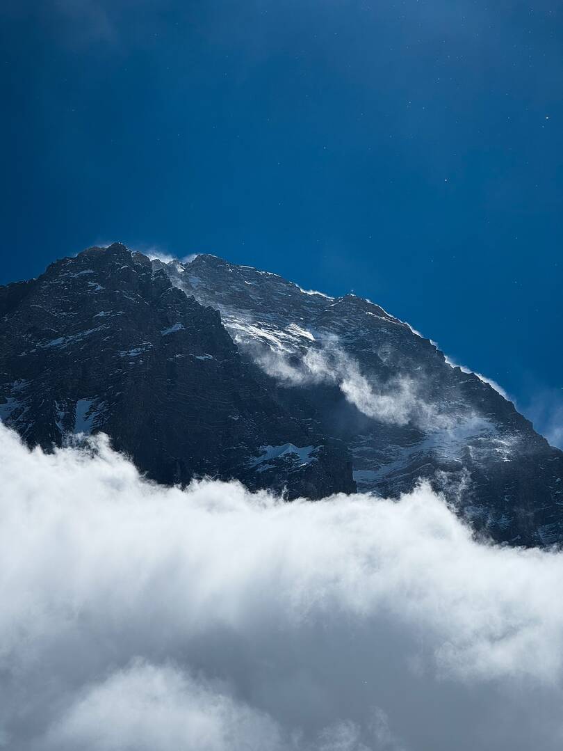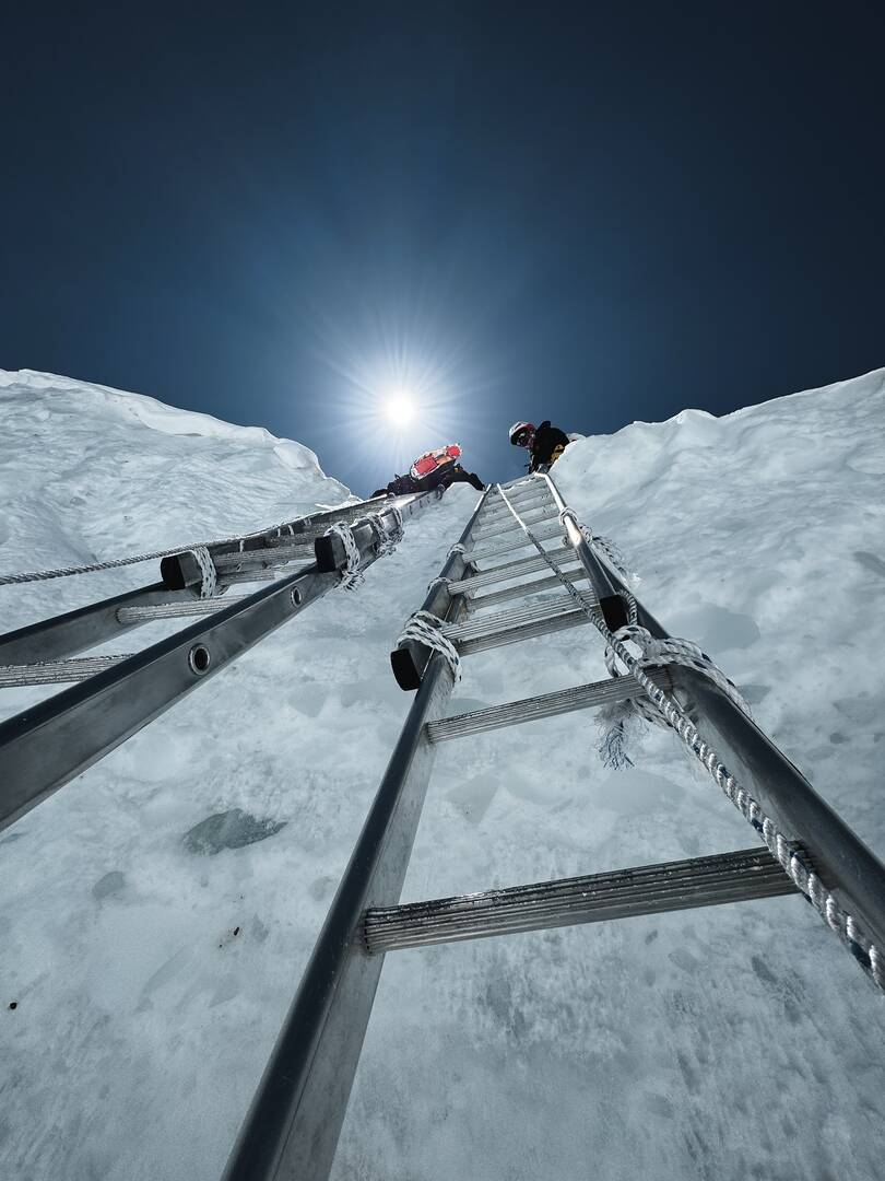 Au sommet, les images sont à la fois mythiques et brutes : une petite plateforme enneigée, des drapeaux flottant dans le vent, et l’immensité de l’Himalaya à perte de vue. Chaque photo prise là-haut symbolise des années de préparation, une gestion précise des risques et un effort physique et mental extrême.